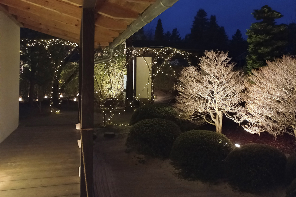 Beleuchteter Garten zur Adventszeit: